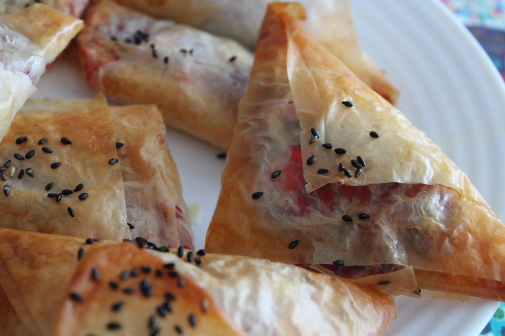 Disfruta de estas samosas de remolacha y queso feta, una mezcla de texturas y sabores que te llevará en un viaje culinario inolvidable.